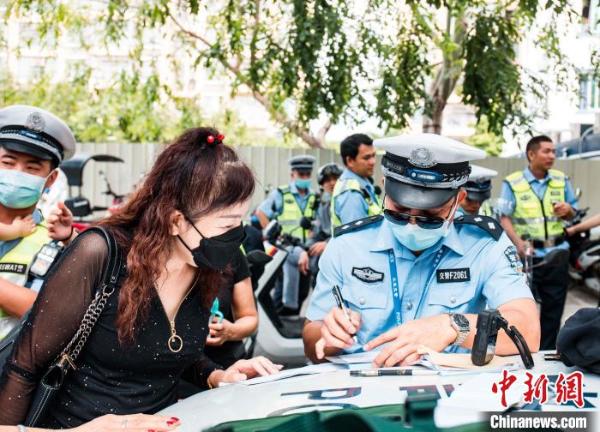 交警对行人的交通违法行为开出罚单。三亚交警供图
