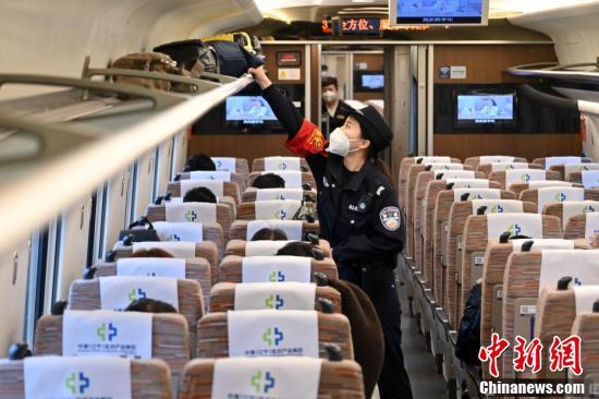 3月8日,国际妇女节。当日下午,北京铁路公安局石家庄乘警支队“95后”女乘警赵凌月正在一辆复兴号列车上忙碌,这也是她在列车上度过的第一个“三八节”。图为工作中的赵凌月。