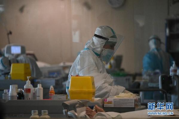 3月10日,医务人员在意大利博洛尼亚一所医院的新冠隔离区工作。新华社发(贾尼·斯基基摄)