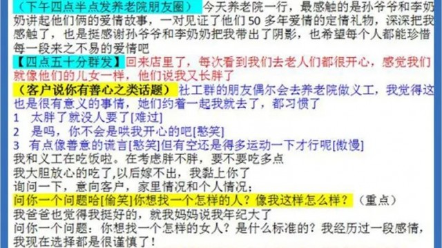 下午,骗子群发自己去养老院做义工陪护老人,并和受害者聊看望老人的感受,在闲聊中重点要有“问你一个问题哈(偷笑),你想找一个怎样的人?像我这样的人怎样?”