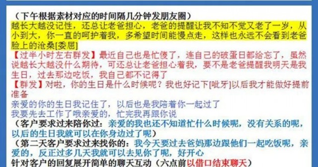 下午,骗子发朋友圈称老爸提醒自己明天过生日,半小时后群发给目标受害者,并询问对方生日。