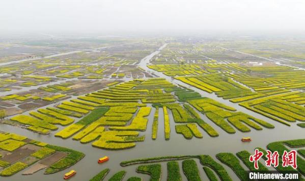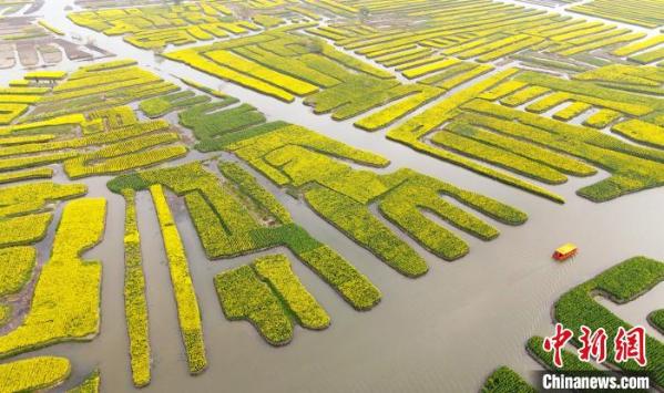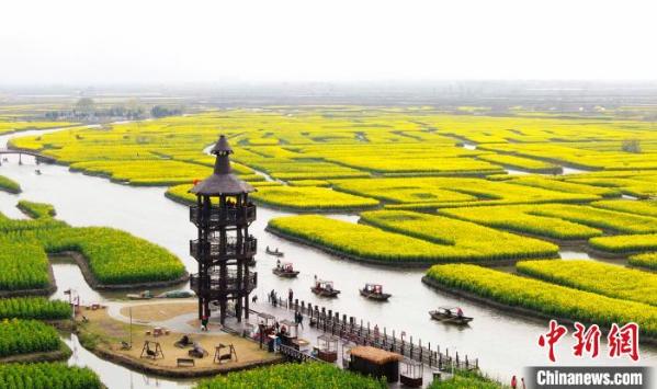 3月18日,江苏兴化千垛菜花风景区的大片油菜花竞相绽放,万亩“垛田”披金装,吸引游客前来踏青、赏花。“垛田”是江苏兴化最具特色的农田,呈条状“漂浮”在水面上,每年清明时节,千垛菜花景区的油菜花盛开,呈现出“河有万湾多碧水,田无一垛不黄花”的壮观景色。