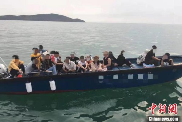 图为小艇非法搭载游客出海观鲸。 黎力彬 摄
