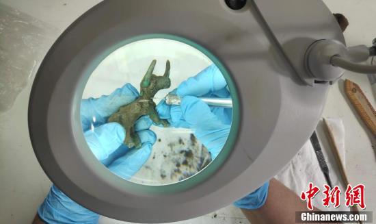 当地时间3月19日报道,希腊雅典,一位考古学家在宙斯神庙附近,发现了古代奥林匹亚的一个小型铜牛神像。根据初步评估,这尊雕像可以追溯到公元前1050至700年。