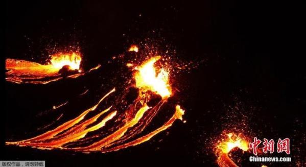 这次喷发发生在当地时间19日20时45分左右,该地区发生了数百次小地震,夜空被红色光芒点亮。