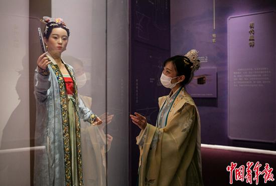 3月2日,中国国家博物馆,韩爽参观“中国古代服饰文化展”。当天,她与店里的几名造型师一起穿着汉服,到国博进行“团建”。 中青报·中青网记者 曲俊燕/摄