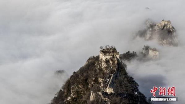 资料图:3月4日,北京遭遇大雾天气,怀柔北部山区箭扣长城云雾缭绕宛如仙境。图片来源:视觉中国