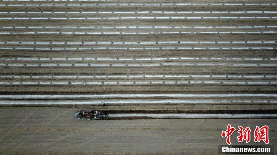 3月27日,新疆巴音郭楞蒙古自治州(以下简称巴州)轮台县野云沟乡野云沟村棉农在种植棉花。连日来,巴州棉农陆续开展准备工作,巴州是新疆棉花主产区之一,该州今年种植棉花达到330余万亩,是重要的国家优质商品棉基地。在棉花领域,从种植到收获基本实现机械化作业。确·胡热 摄