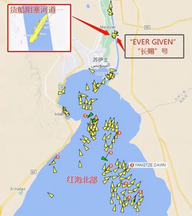 目前,“长赐”号依然“横”运河距离南端河口,尚未脱困。