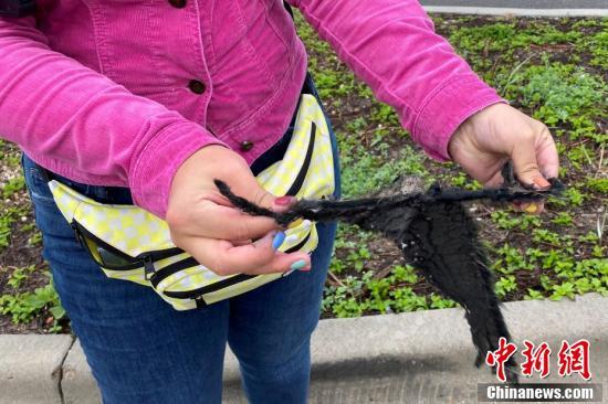 当地时间3月30日,美国得克萨斯州博卡奇卡,在距离SN11着陆时爆炸的地点5英里的地方,一名观众手持一块碎片。