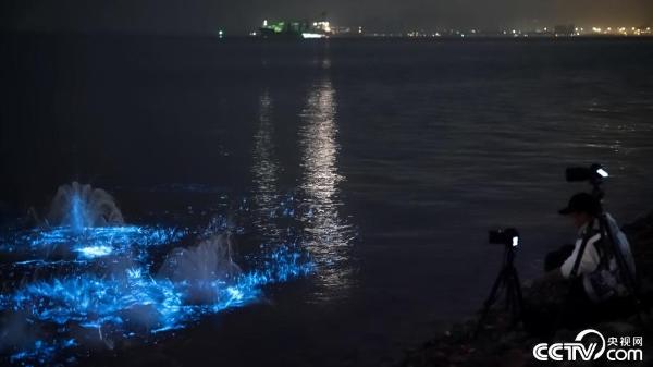 2021年3月29日,厦门筼筜湖畔出现“蓝眼泪” 景观。蓝眼泪景观是由一种称为夜光藻的浮游生物引起的发光现象,因夜光藻的身体内有荧光酶和荧光素,受海浪拍打等刺激时发生反应,就会发出浅蓝色的光。 视觉中国