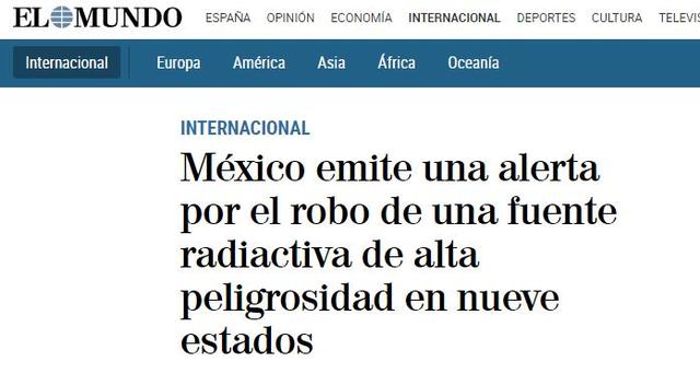 《世界报》:墨西哥就高度危险的放射源被盗一事向9个州发出警报