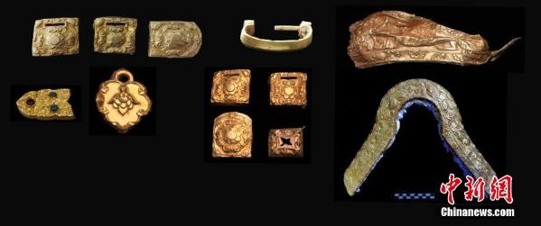 4月13日,2020年度全国十大考古新发现于今日揭晓,具体为:贵州贵安新区招果洞遗址、浙江宁波余姚井头山遗址、河南巩义双槐树遗址、河南淮阳时庄遗址、河南伊川徐阳墓地、西藏札达桑达隆果墓地、江苏徐州土山二号墓、陕西西安少陵原十六国大墓、青海都兰热水墓群2018血渭一号墓、吉林图们磨盘村山城遗址。图为青海都兰热水2018血渭一号墓出土的金器。青海都兰热水联合考古队 供图