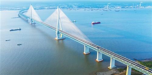 中国中铁承建的沪苏通长江公铁大桥是中国自主设计建造、世界上首座跨度超千米的公铁两用斜拉桥(2020年6月29日摄,无人机照片)。