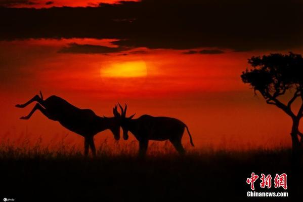 2021年4月14日报道(具体拍摄时间不详),33岁的摄影师Priyanshi Bachhawat Nahata来自迪拜,他在肯尼亚安博塞利国家公园和马赛马拉国家保护区拍摄到了令人惊叹的野生动物日出剪影,宛如电影《狮子王》的场景。日出时分橙色的天空映衬出犀牛、大象、猎豹、长颈鹿、羚羊等野生动物在大草原上的清晰轮廓,画面唯美。图片来源:IC photo