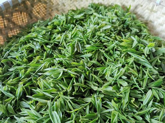 樊生华把采茶工刚刚采摘回来的西湖龙井茶鲜叶均匀地放在摊放架上,最近几天有雨,他说等叶片再干一些就可以炒茶了。樊生华回到桌前向茶杯里续了些水,翠绿的茶叶被水冲得旋转、四散,他继续讲起自己的故事。