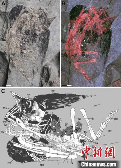 王世营博士研究生接受中新社记者采访介绍说,长期以来,德国索伦霍芬发现的始祖鸟一直是古生物学家探索鸟类起源的最重要的证据。不过,自上世纪90年代以来,中国热河生物群发现大量带羽毛恐龙和原始鸟类,为鸟类起源和早期演化提供更多关键性证据。