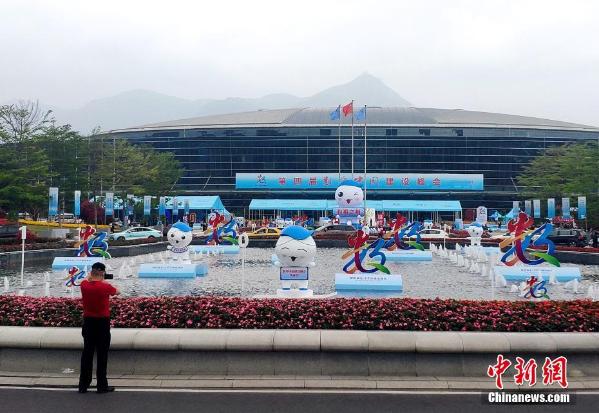 4月24日,一位市民在第四届数字中国建设峰会主会场福州海峡国际会展中心前拍照。第四届数字中国建设峰会将于4月25日至26日在福建省福州市举行。 中新社记者 吕明 摄