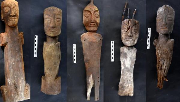 桑达隆果墓地还出土了5件木俑,形态各异,有的胸部刻有鹰鸟的形状。拙朴的雕刻手法,与新疆吐鲁番发现的木俑有相似之处。
