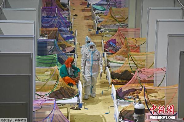 当地时间2021年5月2日,印度新德里,印度英联邦运动会运动员村变成临时新冠病房。印度卫生部5月1日公布的数据显示,印度单日新增新冠确诊病例首次超过40万例,创该国疫情暴发以来单日新增最高纪录。