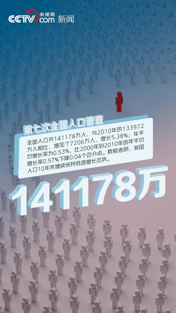 央视网消息: 国务院新闻办5月11日举行新闻发布会,公布第七次全国人口普查的主要数据。普查显示,我国总人口数超过14.1亿,我国仍是世界第一人口大国。我国人口10年来继续保持低速增长态势,人口素质不断提高。