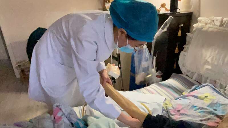 北京佑安医院的一名护士为患者开展居家护理服务。刘昶荣/摄