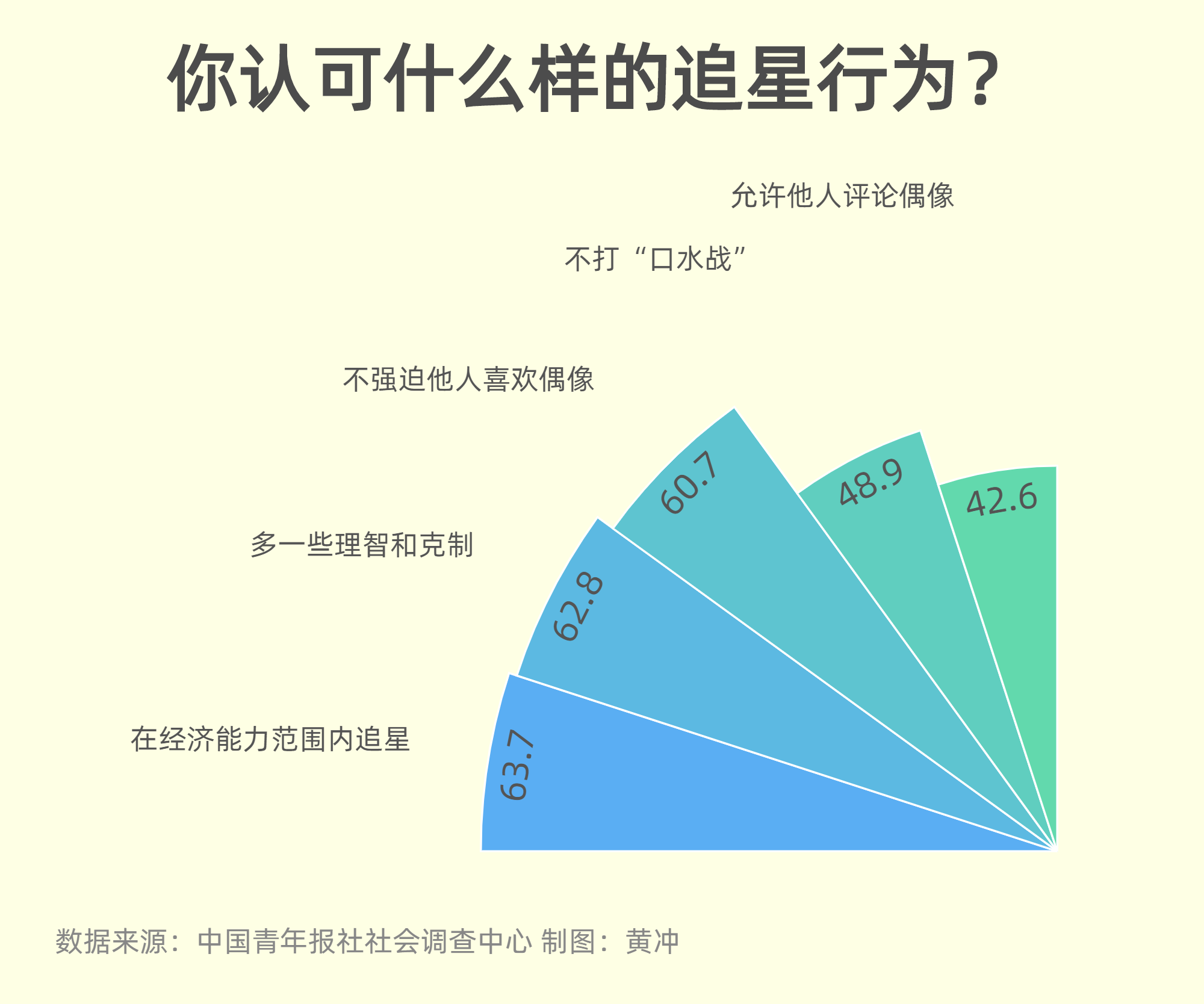 调查中,63.0%的受访青少年表示反感粉丝团互相谩骂、攻击,48.2%的受访青少年反感盲目崇拜,分不清现实和舞台。
