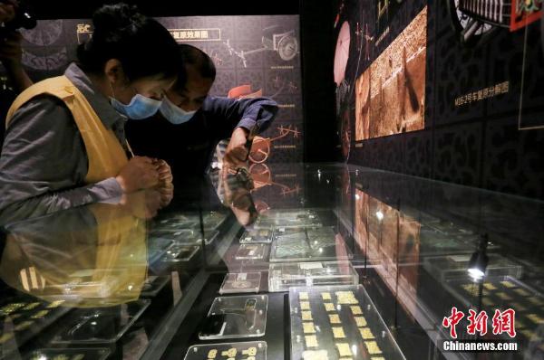 5月18日,兰州民众在甘肃省博物馆参观马家塬出土的车马饰、车马器。中新社记者 高展 摄