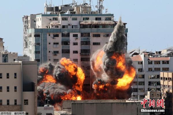 当地时间5月15日,以色列军方空袭了加沙地带一座办公楼,楼内有卡塔尔半岛电视台和美联社等媒体的办公室。