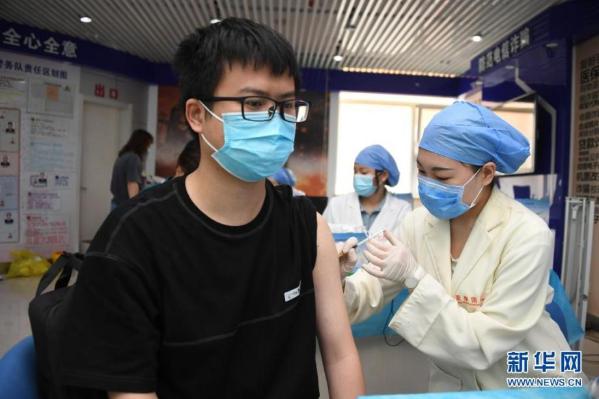 5月20日,在北京市海淀区花园路街道新冠疫苗临时接种点,医护人员为市民接种一剂次新冠疫苗。近期,北京市海淀区为市民提供全程只需一针的新冠疫苗。据了解,本次提供的一剂次新冠疫苗为重组新冠病毒疫苗(5型腺病毒载体),与之前的两针新冠疫苗相比,它们的接种方式和接种年龄范围相同。目前,北京市海淀区能够提供一剂次新冠疫苗接种服务的有花园路街道接种点、甘家口街道接种点等接种单位。 新华社记者 任超 摄