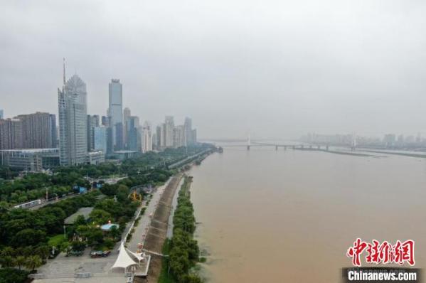 航拍赣江南昌段水域,沿江低处已被淹没。 刘力鑫 摄