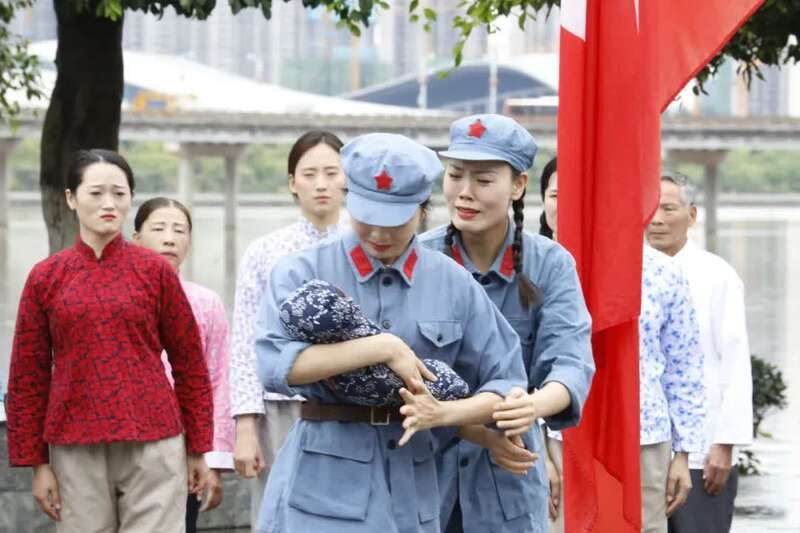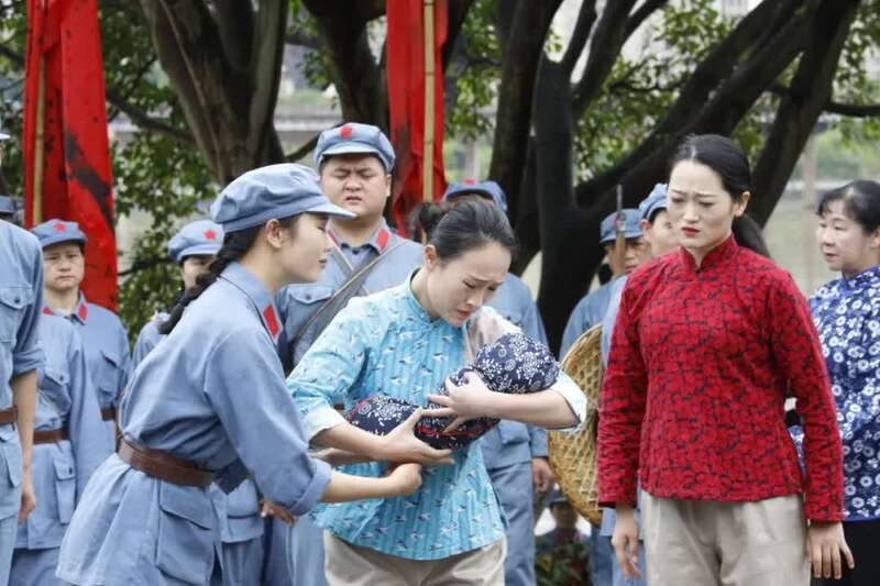 渡口边的情景表演,真实再现了于都人民送别红军时依依不舍的场面。