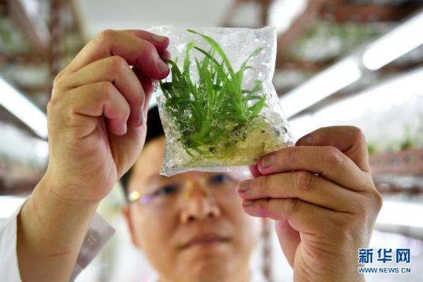 5月21日,科研人员在国家(海南)热带植物隔离检疫中心组培中心检查文心兰植株生长情况。