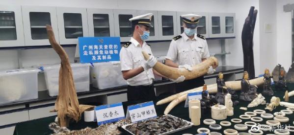 广州海关25日将一批查获的濒危野生动植物及其制品移交给广州市林业和园林局。此次移交涉及8个品种、总重量为105.77千克,主要有象牙及其制品、豹皮、沉香木、穿山甲鳞片、盔犀鸟头骨、羚羊角、檀香紫檀、犀牛角。这是近年来广州海关从进出境旅检、寄递、货运等渠道查获的部分涉案物品,也是今年以来向地方部门移交查获濒危野生动植物及其制品品种最多、数量最大的一次。据相关法律法规,除合法持有证明外,禁止贸易、携带、邮寄珍贵稀有野生动植物物种及产品进出境,情节严重构成犯罪的将依法追究刑事责任。(记者丁乐)