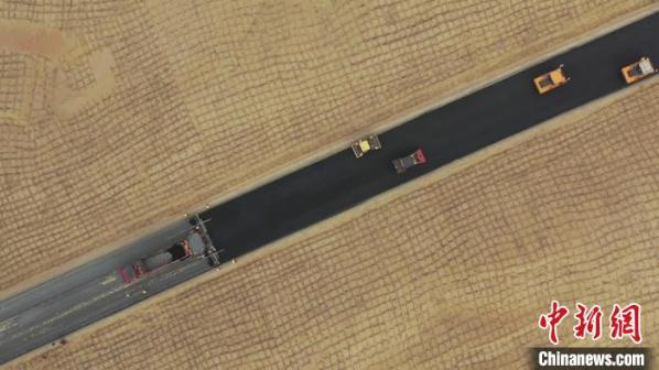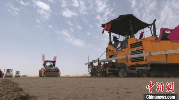 6月2日,穿越塔克拉玛干沙漠的沙漠公路新疆尉犁至且末沙漠公路K30处施工现场机车轰鸣,大型摊铺机、压路机正在进行基层的摊铺、压实作业。目前,路面施工已完成全线的1/6,预计10月1日前尉犁段路面全部完成,明年5月建成通车。项目北起尉犁县,南至且末县,路线全长334公里。(倪菁菁 汪志鹏 景丽君)