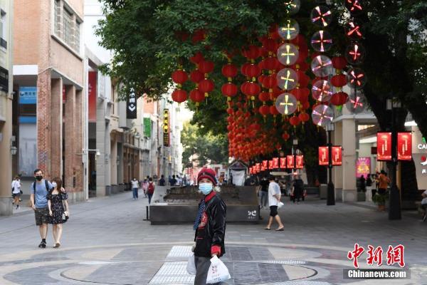 6月6日,受疫情影响,广州市越秀区北京路步行街客流稀少。 中新社记者 陈楚红 摄