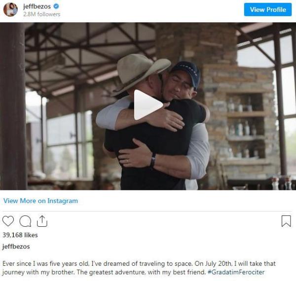 图片来源:贝佐斯社交媒体截图。