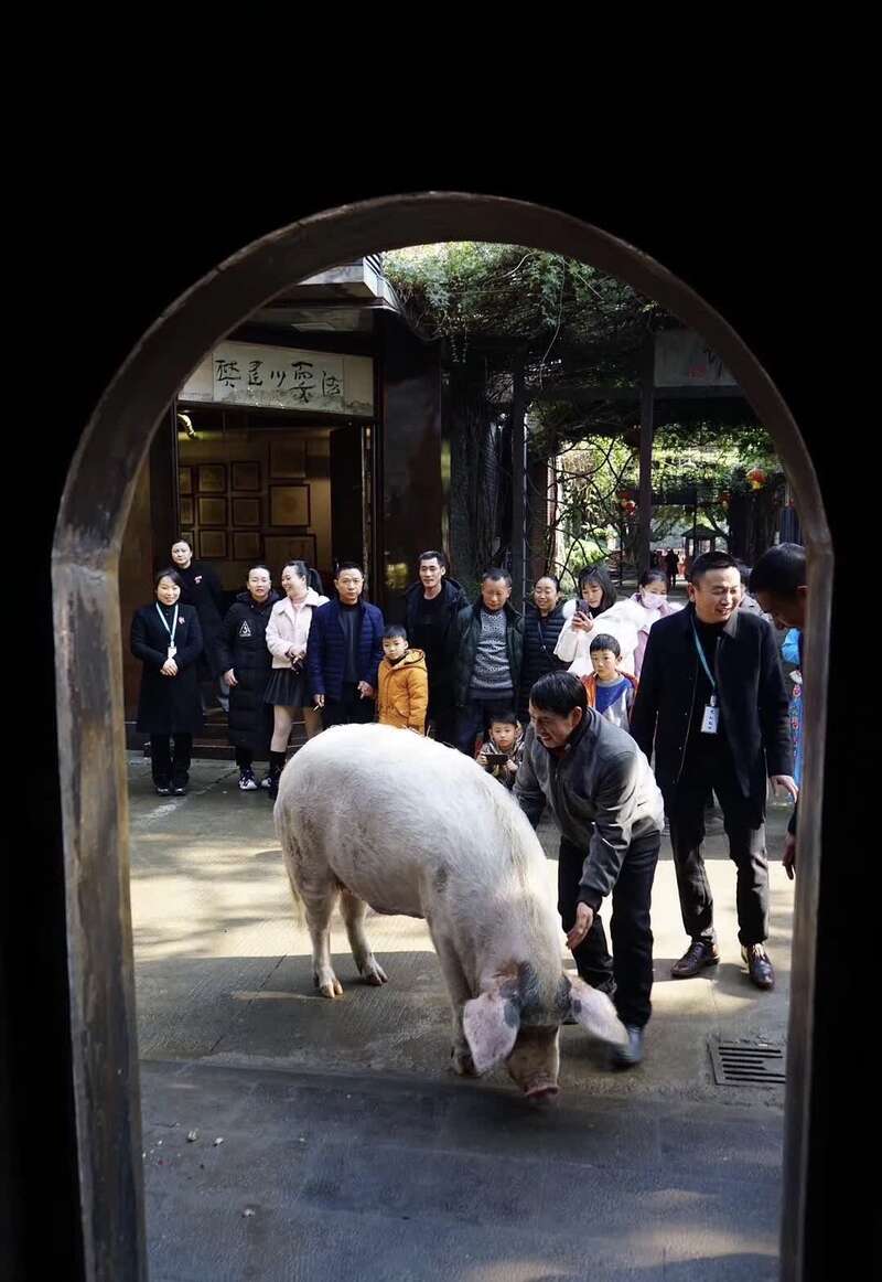 游客探望“猪坚强”。(图片来源:建川博物馆微博)