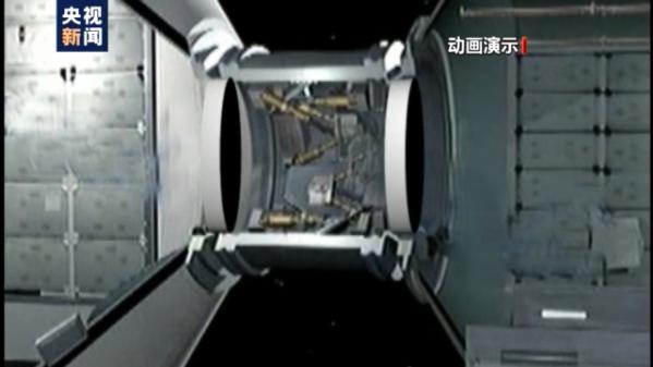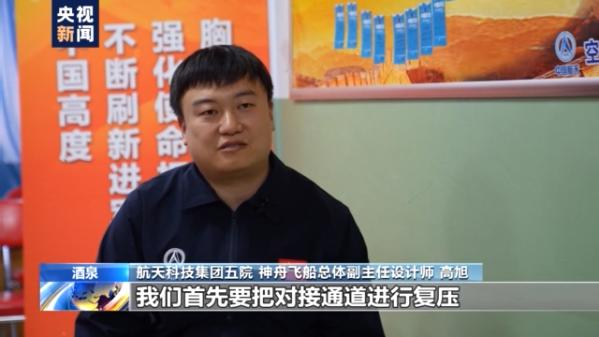 航天科技集团五院神舟飞船总体副主任设计师 高旭 :我们首先要把对接通道进行复压,让它的压力与两边的飞行器舱内压力达到一个平衡,这样的话航天员就可以比较方便的打开我们轨道舱的前舱门,然后进入这个对接通道。