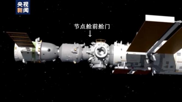 在完成交会对接之后,航天员首先要打开神舟十二号飞船返回舱的舱门来到轨道舱,此时轨道舱的前端和空间站核心舱前端圆形的节点舱之间的对接机构,形成了一个直径80厘米,长约1米左右的通道。