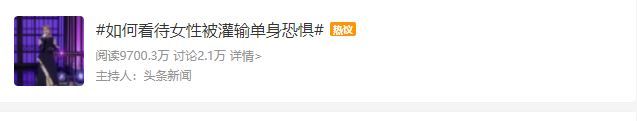 日前,因一档脱口秀节目中的嘉宾发言,“女性被灌输单身恐惧”的话题引发网络讨论。这位嘉宾认为:经常会听到有人说“你再这样就嫁不出去了”“优秀单身女性的现状就是你必须要过得比已婚女性光鲜亮丽,别人才会觉得你没有那么惨”。