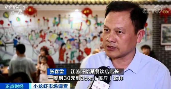 江苏盱眙某餐饮店店长 张春雷: 小龙虾一度价格下跌,跌得比较大,一度到30元到35元每斤,现在秧插起来了,价格又开始反弹上去,基本上在40元到45元每斤。