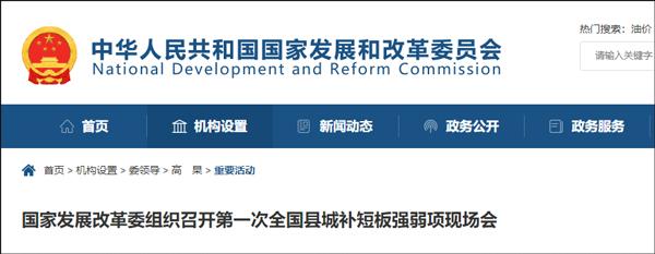 国家发改委网站6月29日消息,为贯彻落实党的十九届五中全会《建议》和国家“十四五”规划《纲要》有关重要部署,推动落实县城补短板强弱项“1+N+X”系列政策性文件,2021年6月23日,国家发展改革委在江苏常州溧阳召开第一次全国县城补短板强弱项现场会,国家发展改革委副秘书长高杲出席会议并讲话。江苏、福建、山东、河北、湖北、安徽、河南、四川、贵州、内蒙古、吉林等11省份发展改革委和县城建设示范地区人民政府负责同志,以及有关中央企业同志参加会议。