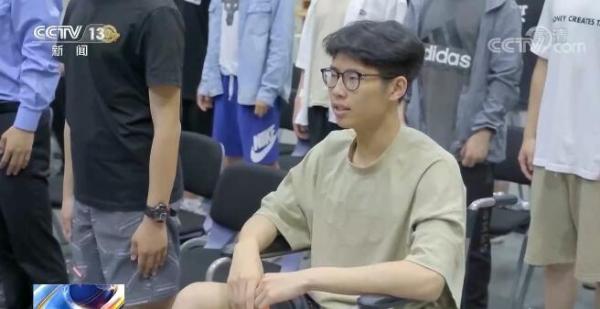 符洋铭严格遵循医嘱,前一周完全卧床,第二周他就坐着轮椅出现在了训练场。由于无法进入站立点位,符洋铭就在队伍边跟着练。为了方便他休息,学校特意给他换了下铺,而训练、上课、吃饭甚至上厕所都有同学专门照顾。