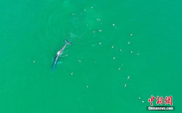 7月5日,布氏鲸现身广东省深圳大鹏湾海域,也是连续七天出没该水域畅游,这里仿佛是布氏鲸的乐园。深圳市大鹏新区鲸豚保护联动工作组对布氏鲸开启了全方位的保护。记者跟踪记录下布氏鲸的活动场景。 中新社记者 陈文 摄