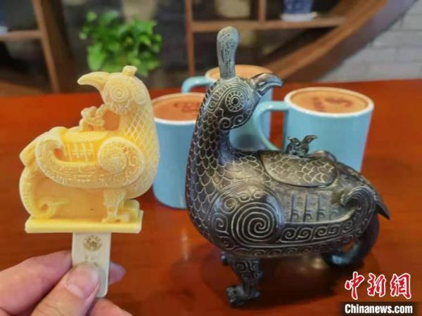 中新网太原7月6日电 (记者 胡健)以山西博物院“镇馆之宝”鸟尊为造型的雪糕6日正式问世,今夏,以三星堆面具雪糕、兵马俑雪糕为代表的“文创雪糕”走红互联网,中国“舌尖文创”方兴未艾。