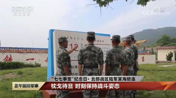 7日,北部战区陆军某海防连组织官兵开展纪念“七七事变”84周年系列活动,让广大官兵铭记历史、勿忘国耻,激发投身强军实践的练兵热情。营区里,8块大理石组成的“铭史墙”记录了西方列强曾7次从这里入侵中国。这段屈辱的历史时刻提醒着驻岛官兵安不忘危,枕戈待旦。从1951年奉命驻岛至今,哨所官兵时刻保持战斗姿态,练兵备战一刻不曾松懈。