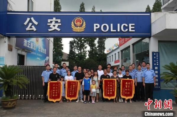 靳女士及亲生父母一家为办案民警送上锦旗 黄琛 摄