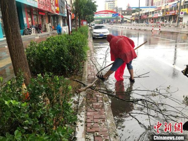 同时,当地环卫、住建、城市执法等部门工作人员冒雨上岗,清理被狂风暴雨袭击后倒伏的大树、掉落的路牌等,巡查危建,疏通被堵塞的下水道,力保道路和排水畅通及住房安全。