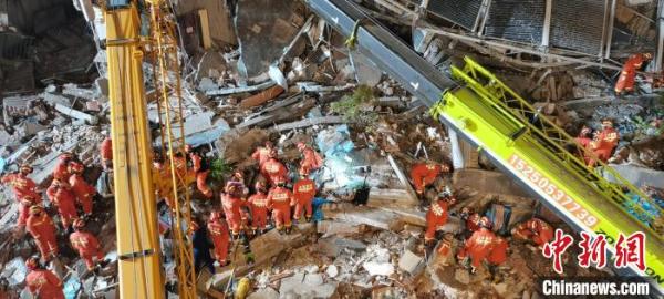 参与救援的民警告诉记者,当天下午接警后第一时间赶到现场参与救援。营救仍在继续。